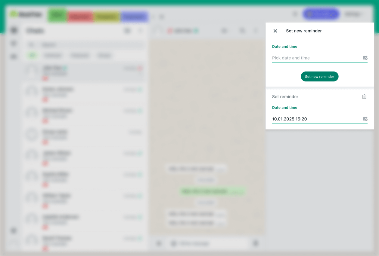 Set and manage follow-up reminders with ease. Create, view, and delete multiple chat reminders easily on WhatsApp.