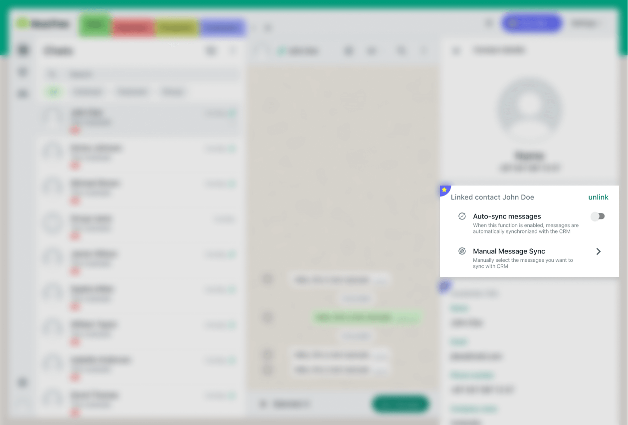 Customize key contact details in WhatsApp Web – link contacts to CRM and view essential fields instantly. There’s no need to switch tabs constantly.